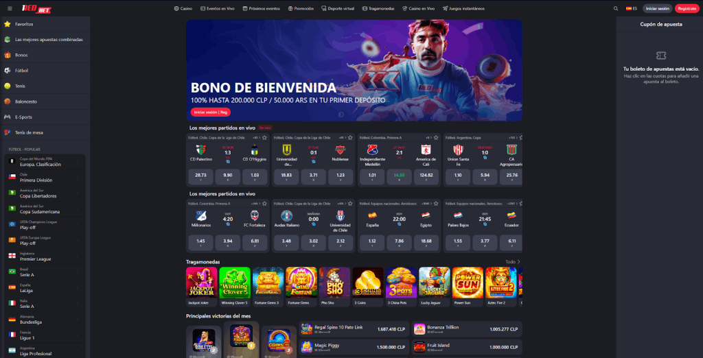 1RedBet opera bajo Kaveh LTD con licencia de la Kahnawake Gaming Commission, una de las regulaciones más antiguas del sector. Acepta pesos argentinos y pesos chilenos directamente, lo que lo hace práctico para jugar casino online dinero real argentina sin pasar por conversiones. El catálogo cubre slots, casino en vivo, deportes virtuales y juegos instantáneos.