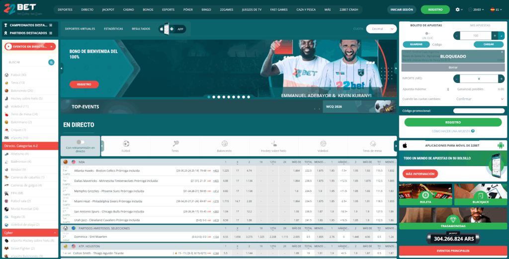22Bet — Triple Licencia y Paquete Casino Hasta 1,875,000 ARS en Cuatro Depósitos