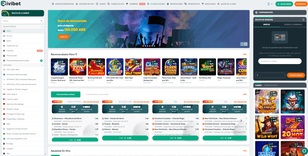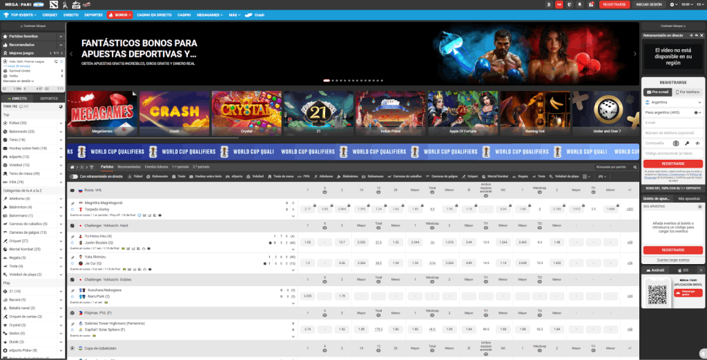 Megapari lleva operando desde 2019 y acumula premios reales: Best Sportsbook en SBC Awards Europe y SiGMA Winner 2024, entre otros. Para el mercado argentino tiene bonos específicos en pesos y acepta MercadoPago, algo que no todos los casinos online argentina dinero real ofrecen. El sportsbook cubre más de 40 deportes con apuestas en vivo.